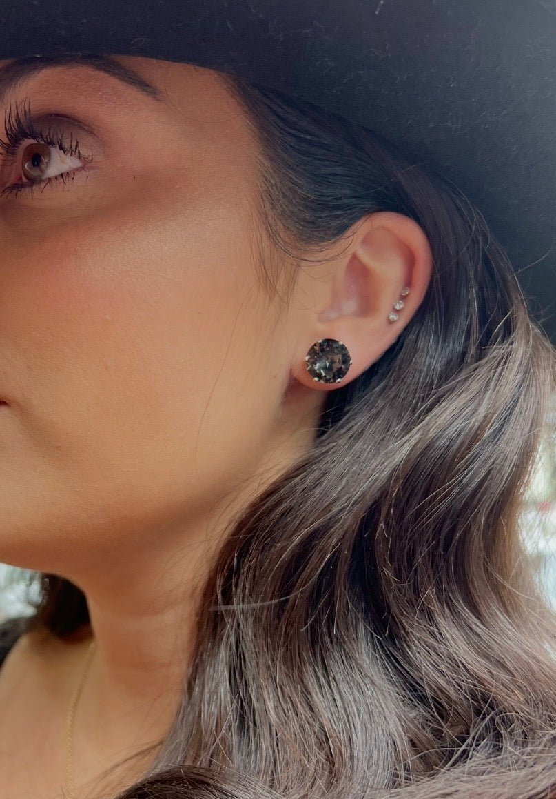 Black Sparkle Bling Sterling Silver Stud Earrings