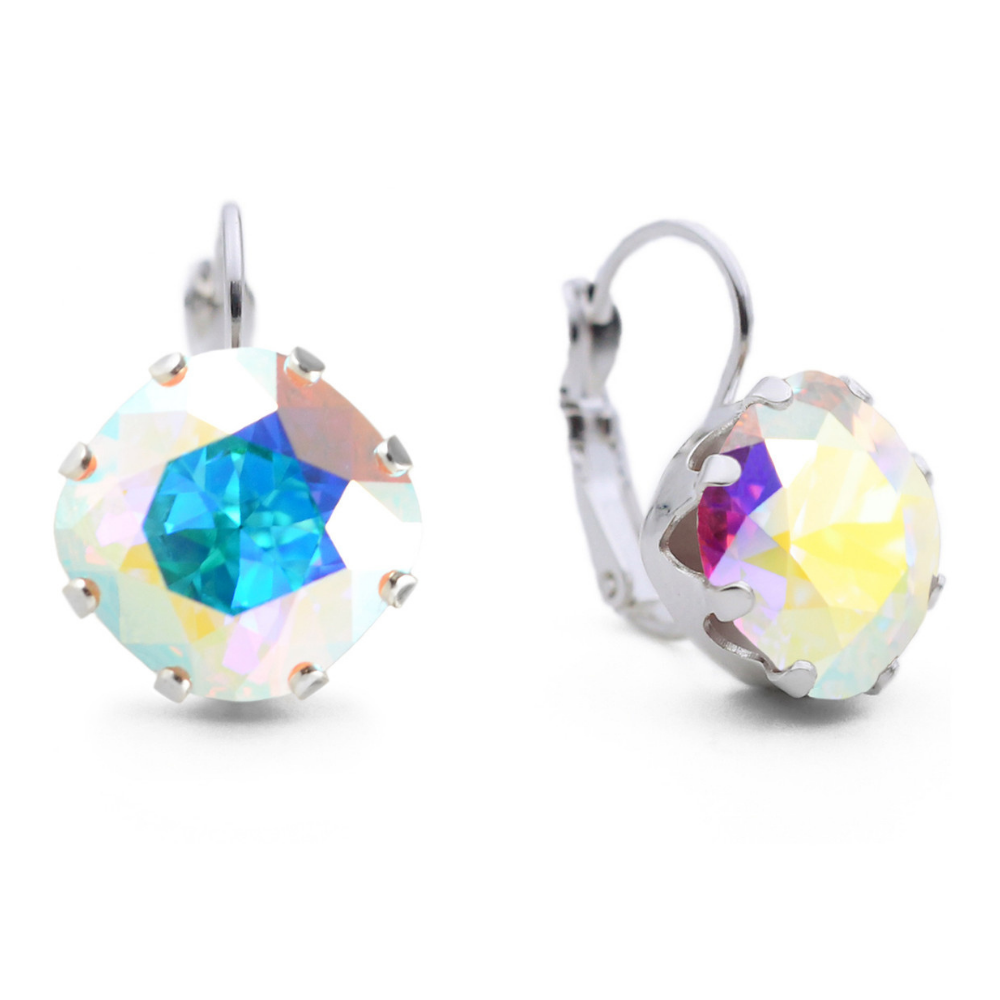 These Leverbacks feature a clear base with hints of pink, purple, orange, and blue. It's a party in a Bling!