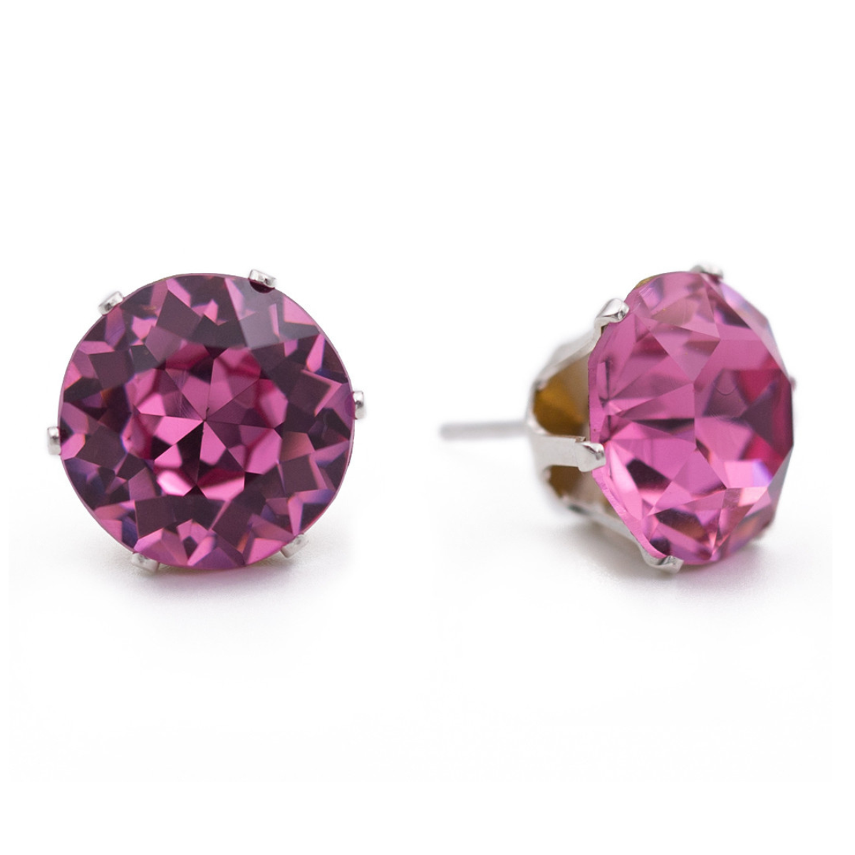 Pink Vintage Mega Bling Sterling Silver Stud Earrings