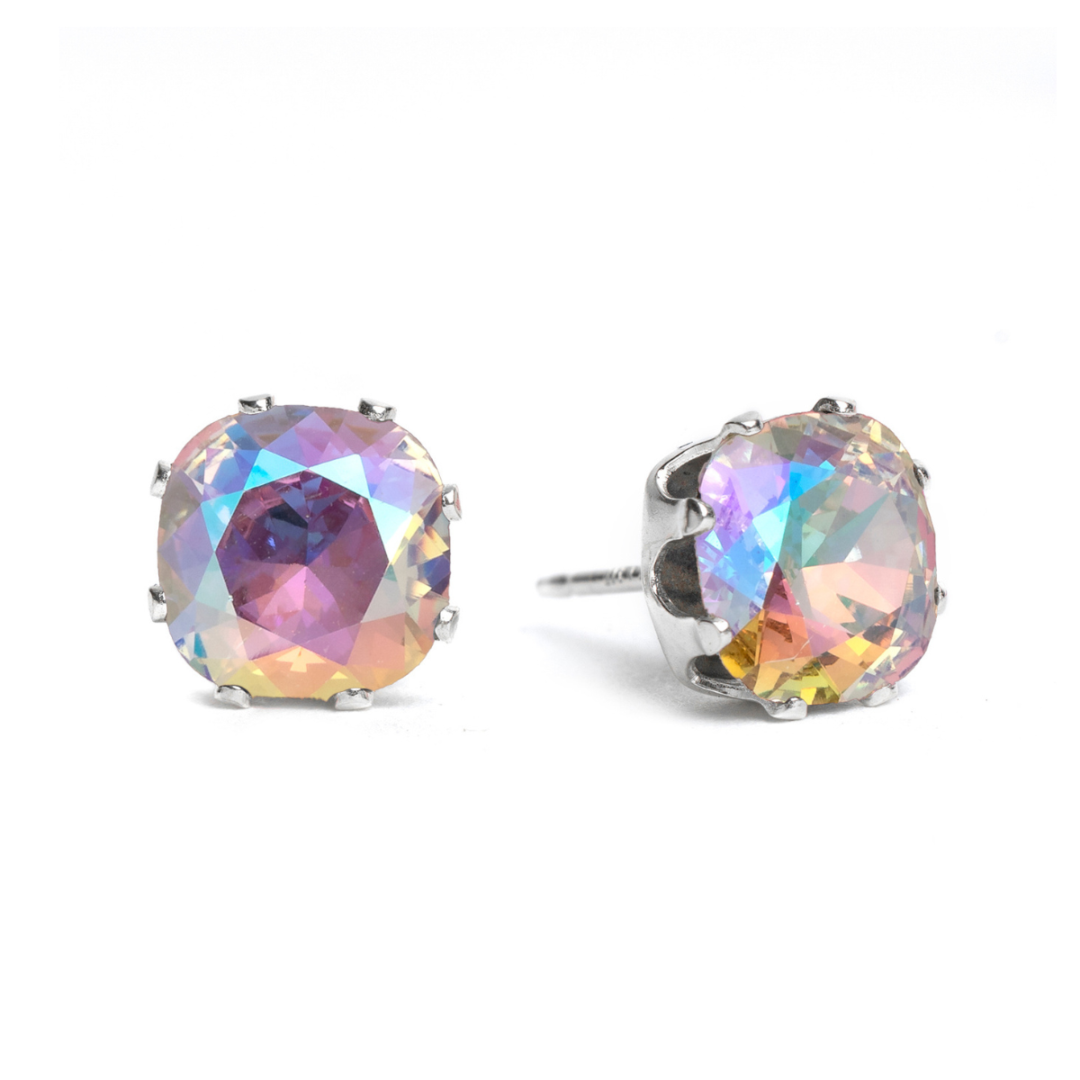 Crystal Shimmer Mini Cushion Sterling Silver Stud Earrings