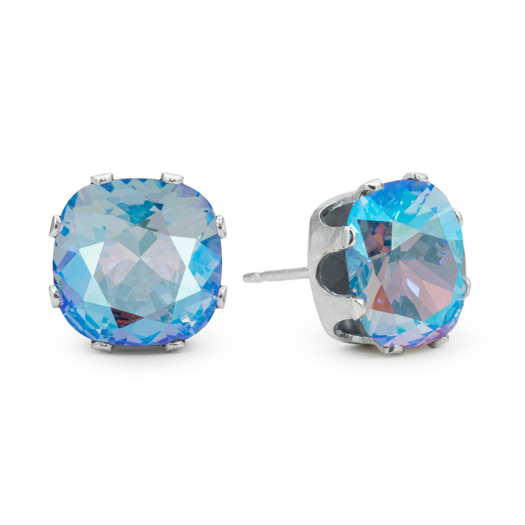 Ice AB Cushion Sterling Silver Stud Earrings