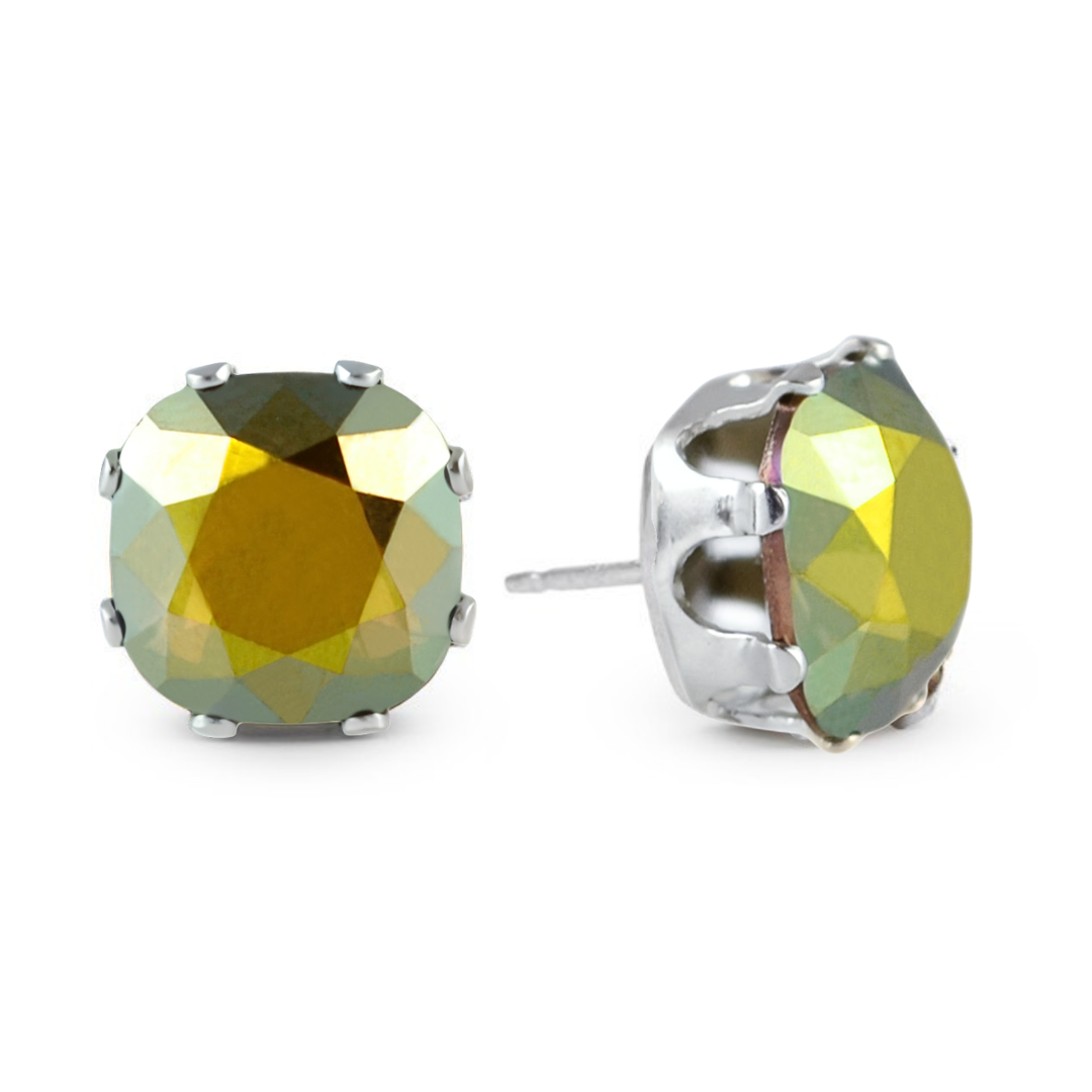 Metallic Green Cushion Sterling Silver Stud Earrings