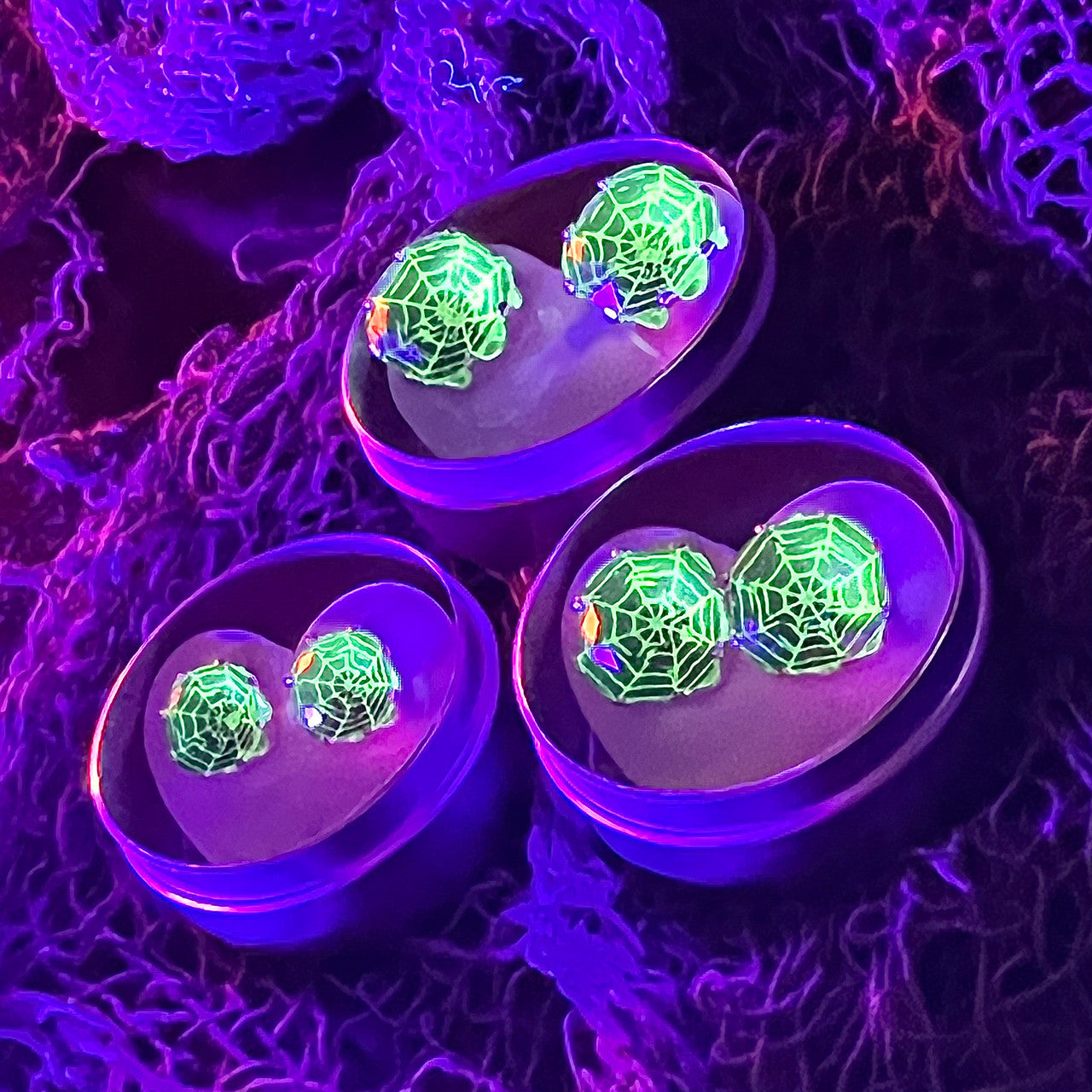 Charge them in the light and watch them glow throughout the night! The Spider web changes color from White in the Daylight to Glowing Green at Night.