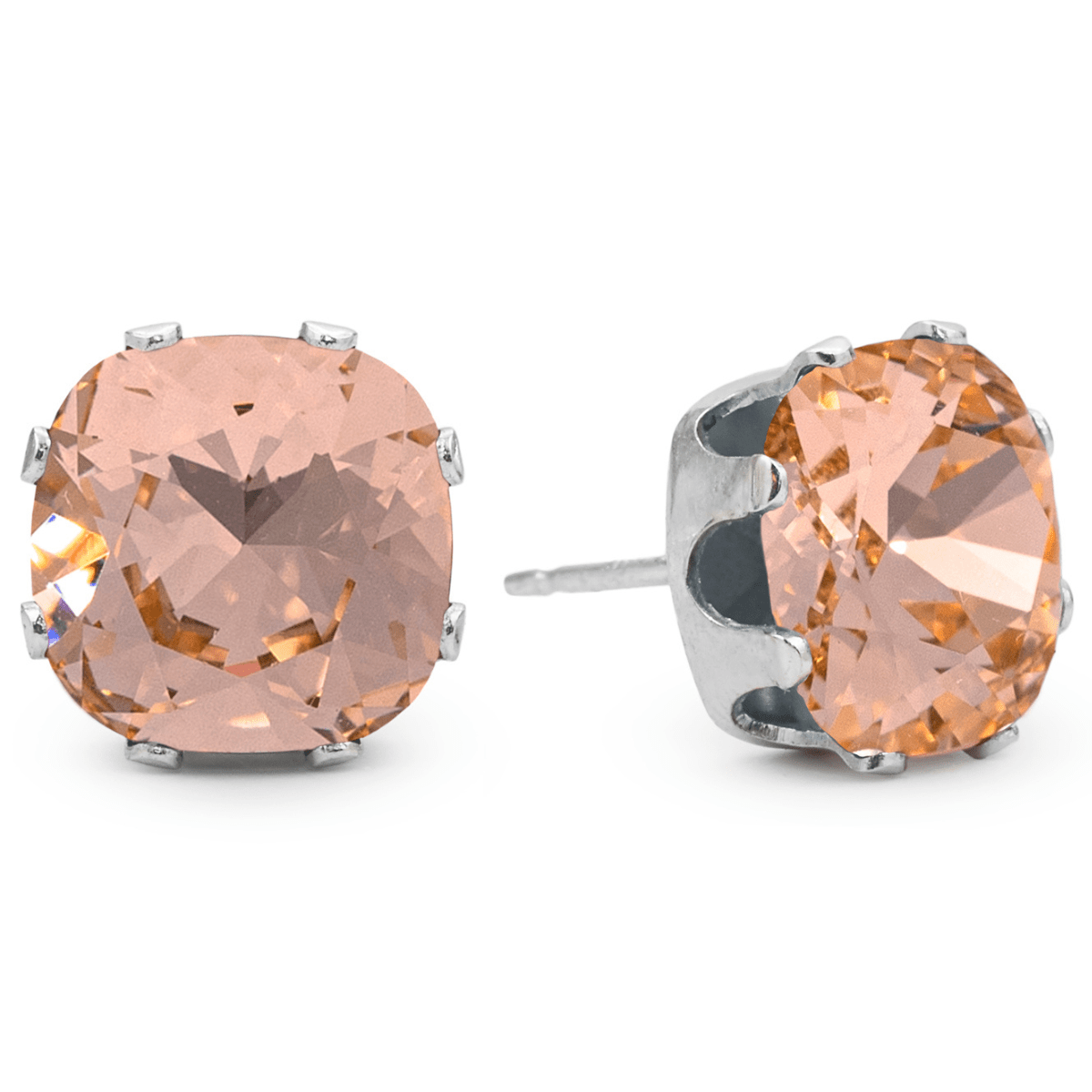 Peach Mega Cushion Sterling Silver Stud Earrings