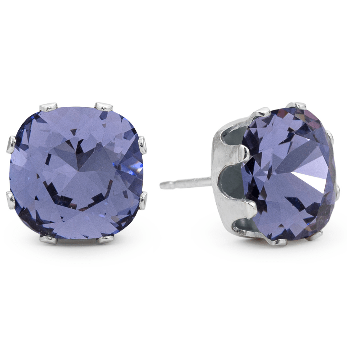 Violet Mega Cushion Sterling Silver Stud Earrings