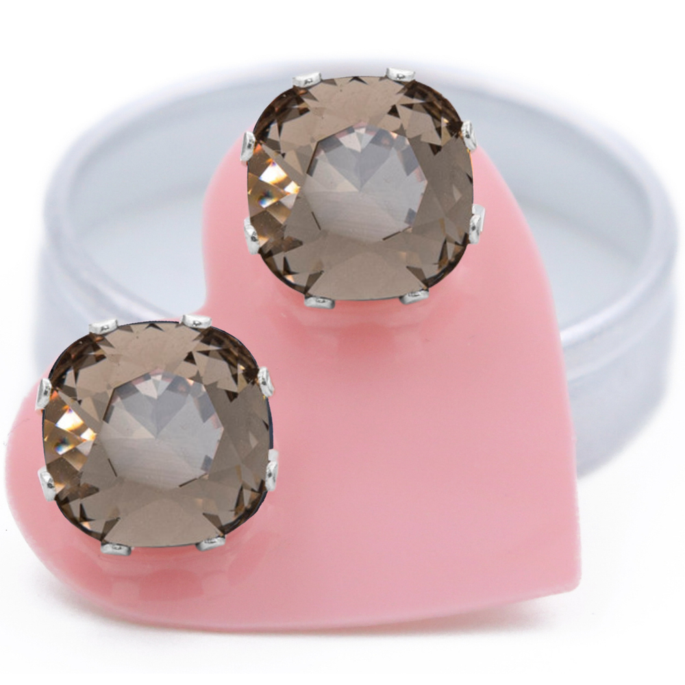 Arctic Grey Mega Cushion Sterling Silver Stud Earrings
