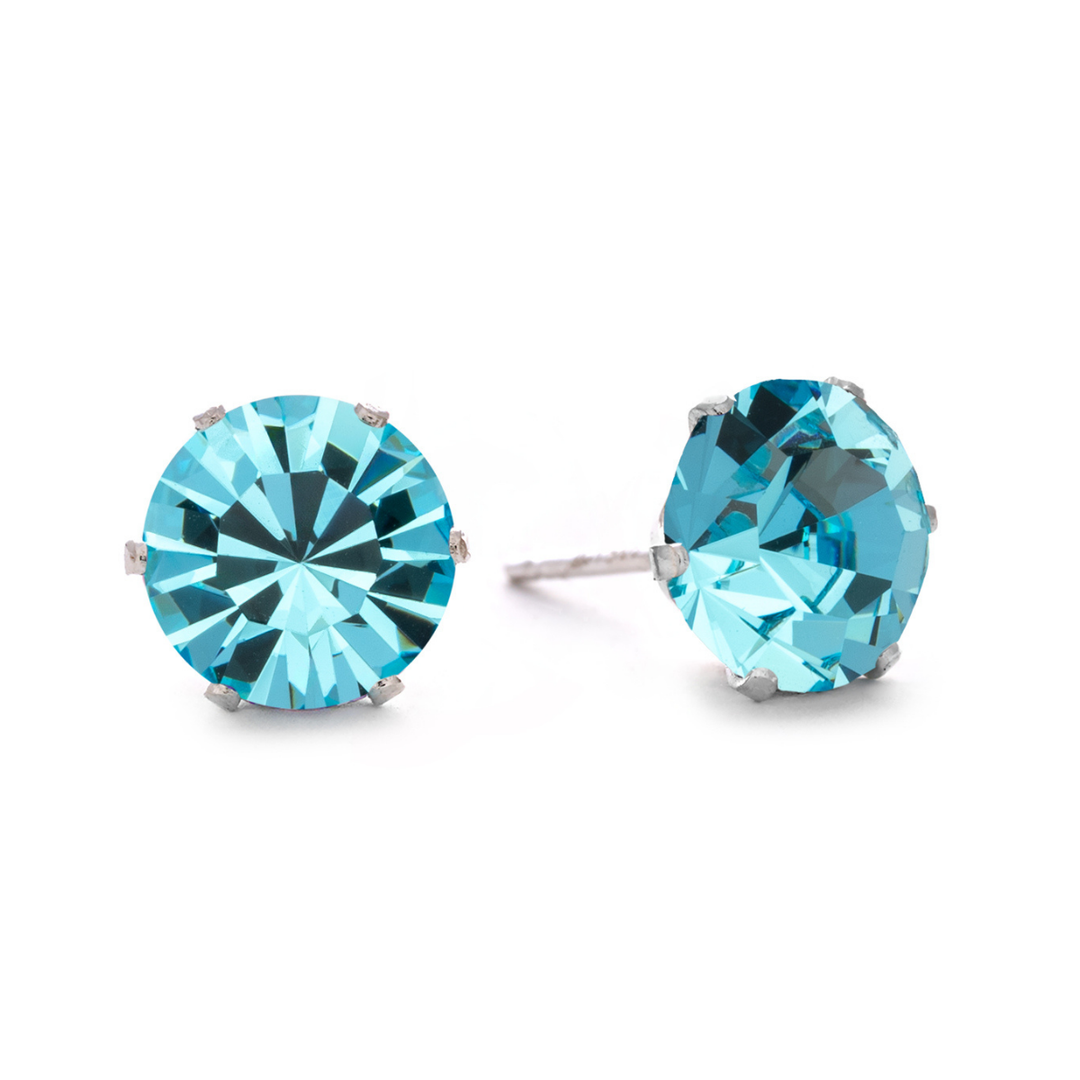 Aqua Mini Bling Sterling Silver Stud Earrings