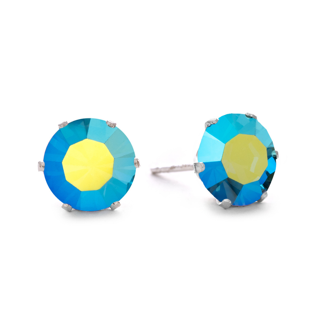 Aqua Bohem Mini Bling Sterling Silver Stud Earrings