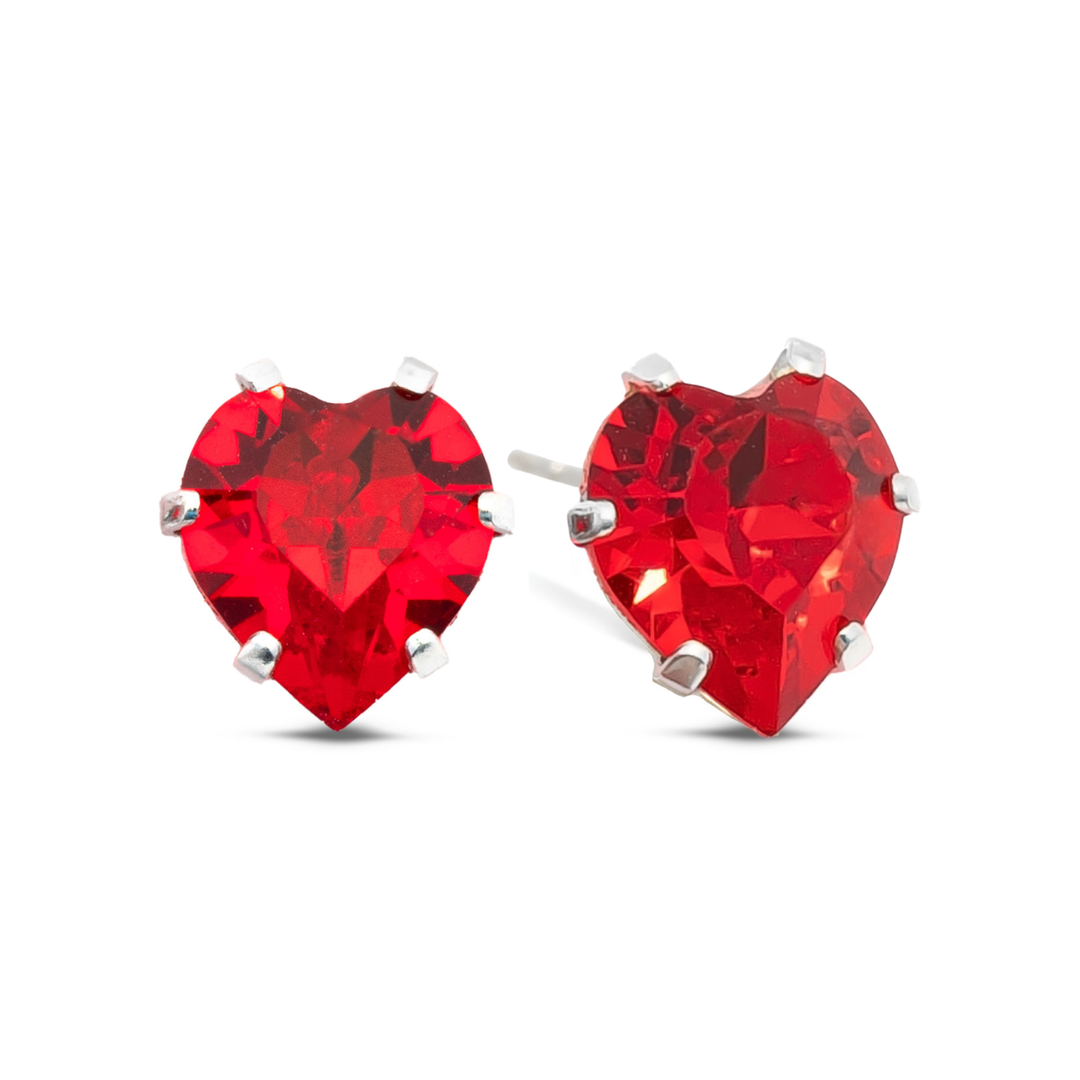 Cherry Bling Heart Sterling Silver Stud Earrings