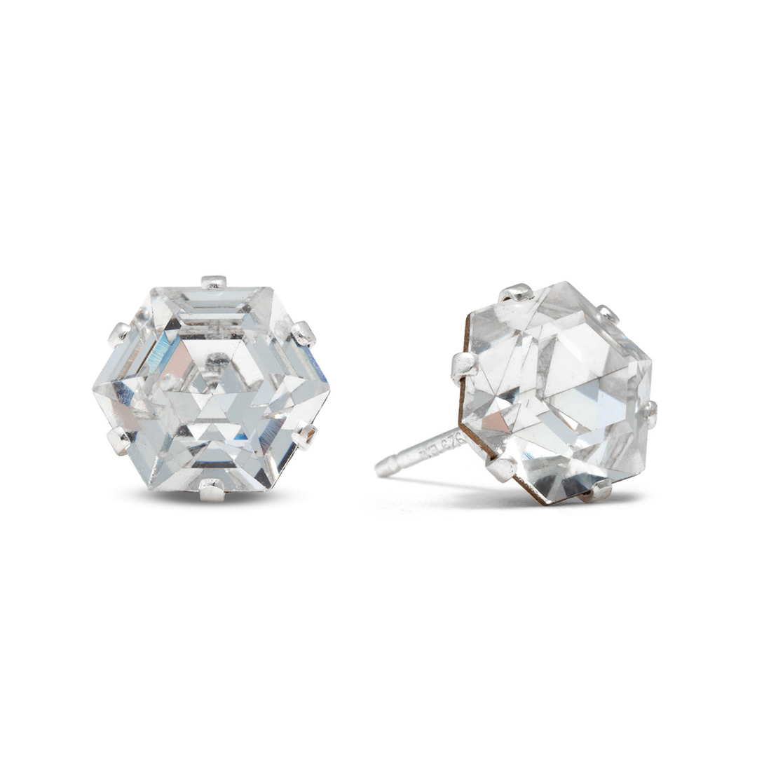 Clear Vintage Bling Hexagon Sterling Silver Stud Earrings