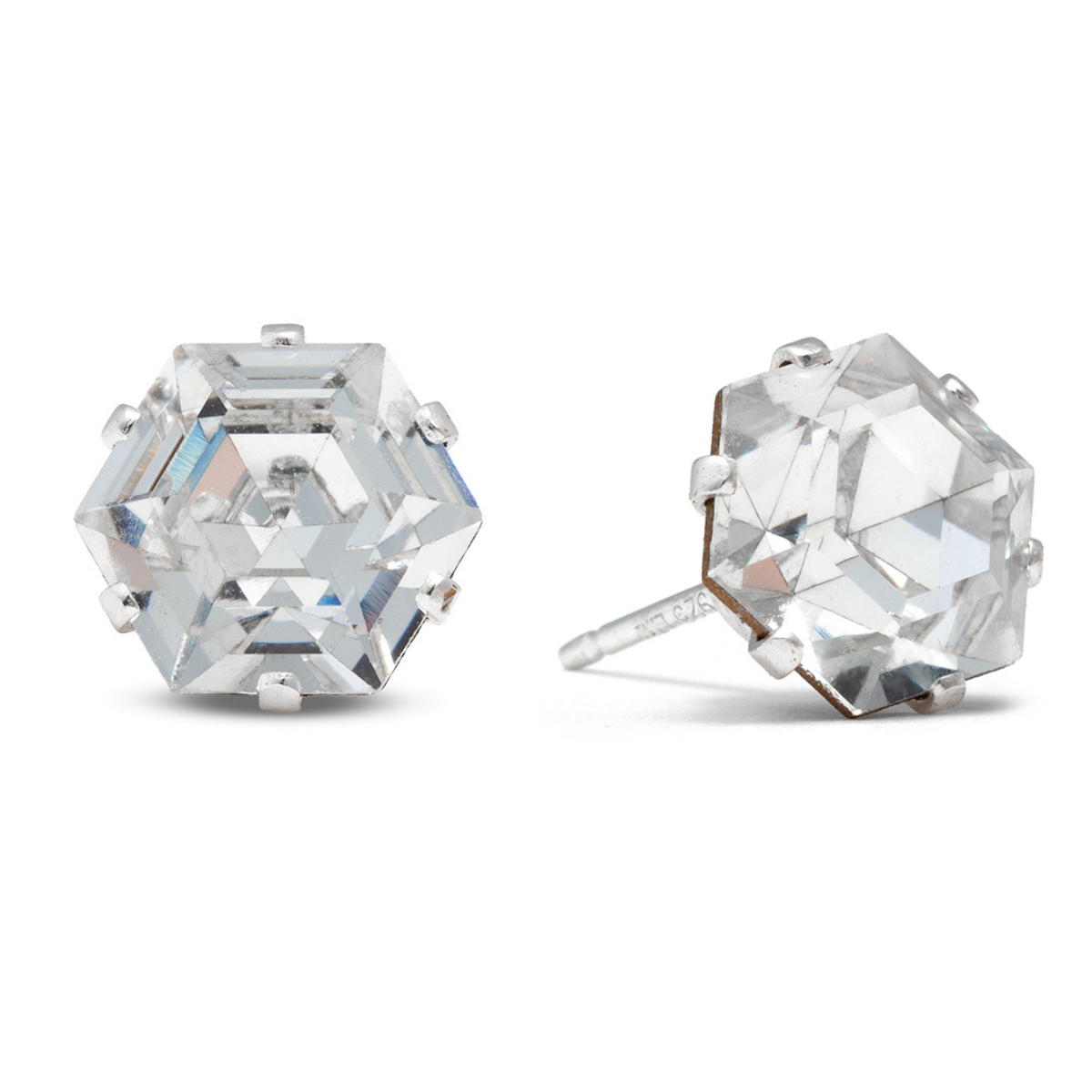 Clear Vintage Mega Hexagon Sterling Silver Stud Earrings
